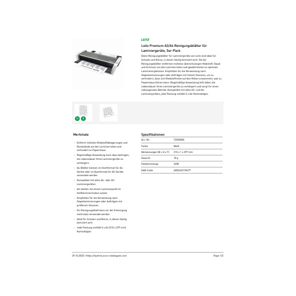 Jetzt Leitz Laminator Reinigungsblatt 5ST A4A3 weiß günstig kaufen.