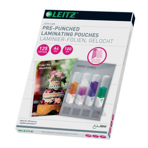 Sie suchen hochwertige Laminierfolien für Ihr Büro? Dann sind die Laminierfolien A4 mit Lochrand 2 x 125 mic matt von Leitz die perfekte Lösung für Sie.