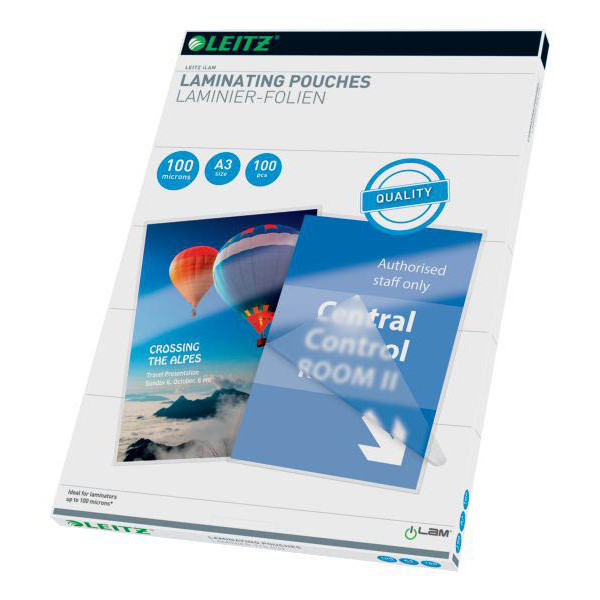 Entdecken Sie die Laminierfolien von Leitz, Modell iLAM Quality 16919. Diese hochwertigen Laminierfolien sind ideal für die Heißlaminierung von Dokumenten im Format A3. Sie bieten optimalen Schutz für Ihre wertvollen Unterlagen und garantieren eine perfekte Versiegelung.