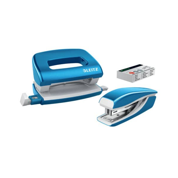 Jetzt Leitz Locher-Heftgerät-Set NeXXt WOW Mini 5561-20-36, blau metallic, 1 mm/10 Blatt günstig kaufen.