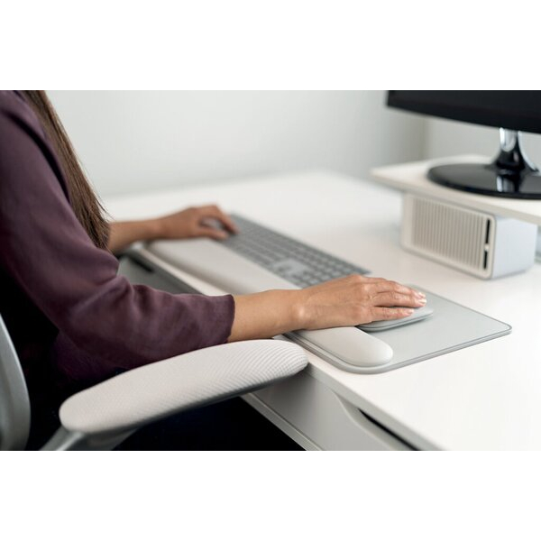 Das Mousepad verfügt über eine integrierte Handgelenkauflage, die Ihr Handgelenk optimal unterstützt und somit Verspannungen und Schmerzen während des Arbeitens vorbeugt. Die ergonomische Form ist ideal für moderne Arbeitsplätze und passt perfekt zu schlanken Geräten.