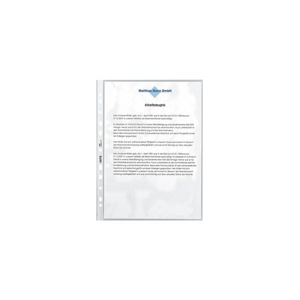 Leitz Prospekthüllen 4796-00-00, A4 transluzent genarbt, oben offen, 0,07mm | Esselte Prospekthüllen Standard Plus 23763, A4 transluzent genarbt, oben offen, 0,09mm | Leitz Prospekthüllen 4797-00-00, A4 transluzent genarbt, oben & links offen, 0,09mm | Oxford Prospekthüllen Standard 100206764, A4 glasklar glatt, oben offen, 0,09mm | Oxford Prospekthüllen 400005473, A4 transluzent genarbt, oben offen, 0,08mm | Soennecken Prospekthüllen 1502, A4 transluzent genarbt, oben offen, 0,08mm | Soennecken Prospekthüllen 1503, A4 transluzent genarbt, oben offen, 0,055mm | Soennecken Prospekthüllen 15030, A4 transluzent genarbt, oben offen, 0,05mm | Leitz Prospekthüllen 4740-00-03, A4 transluzent genarbt, oben offen, 0,13mm | Leitz Prospekthüllen Recycle 4791-00-03, A4 transluzent genarbt, oben offen, 0,09mm |