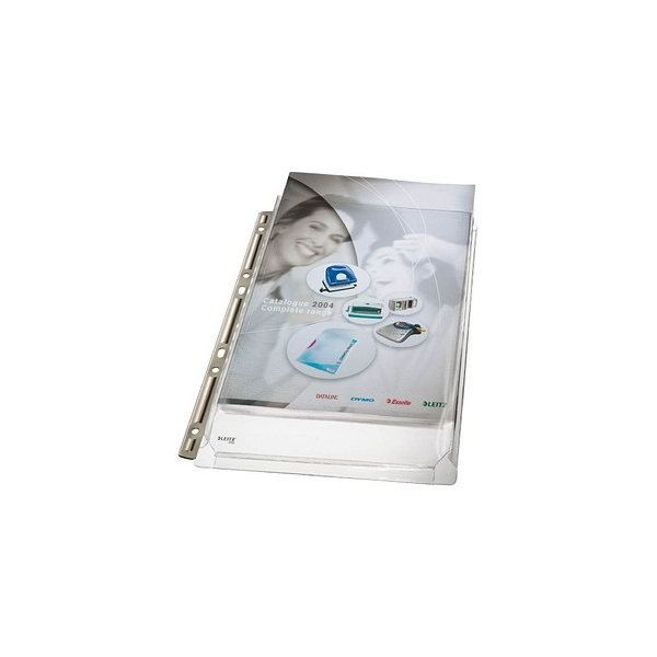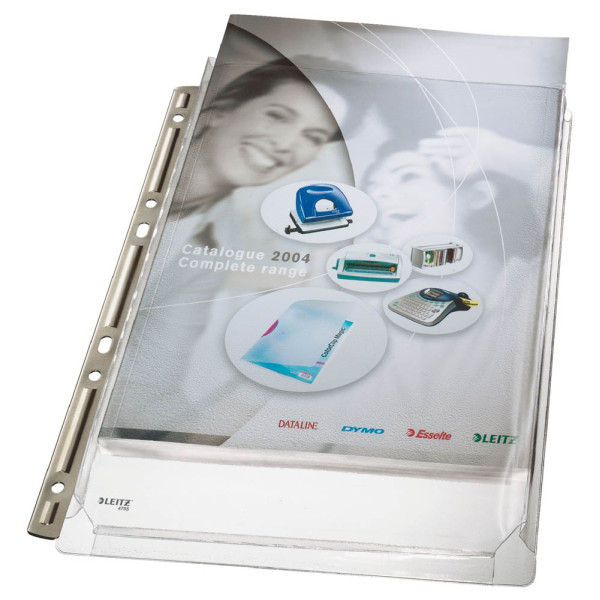Leitz Maxi 4755-30-03 Prospekthüllen mit Falte, mit Einreißschutz, mit metallverstärktem Lochrand in A4.