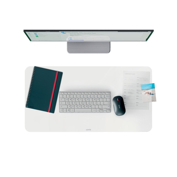 Entdecken Sie die elegante Schreibunterlage 5381-00-03 von Leitz, die nicht nur Ihren Arbeitsplatz aufwertet, sondern auch für Ordnung sorgt. Diese transparente, matte Schreibunterlage bietet Ihnen eine großzügige Fläche von 70 x 36 cm, die Ihren Schreibtisch vor Kratzern, Schrammen und verschütteten Flüssigkeiten schützt.