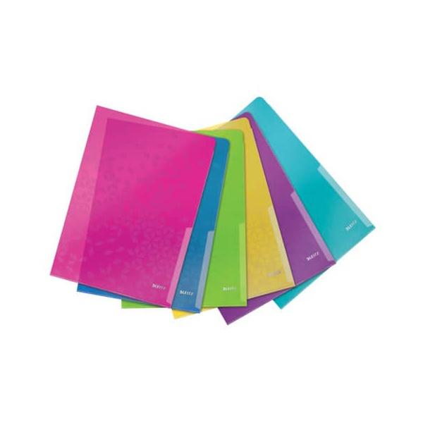 Jetzt Leitz Sichthüllen WOW 4050-00-99, A4, farbig sortiert, transluzent genarbt, oben & rechts offen, 0,2mm günstig kaufen.