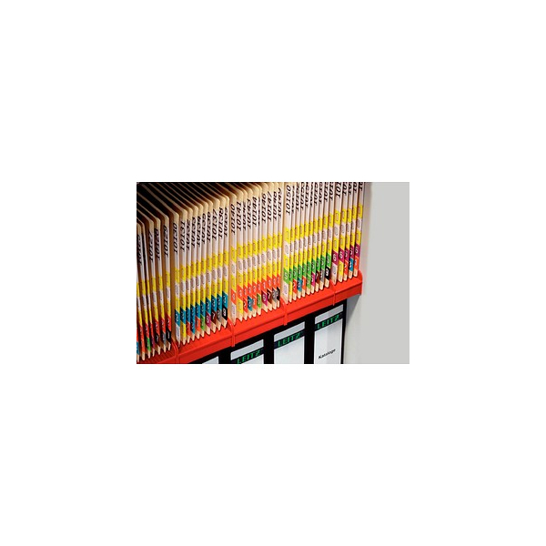 Hergestellt aus schlagfestem Polystyrol, ist der Stehsammler in einem ansprechenden Rot gehalten und garantiert eine lange Lebensdauer. Der Boden ist geriffelt und bietet zusätzliche Stabilität, während die Greifkante an der Vorderseite ein einfaches Entnehmen der Dokumente ermöglicht. Zudem sind Schlitze vorhanden, die eine flexible Nutzung mit Trennwänden ermöglichen.