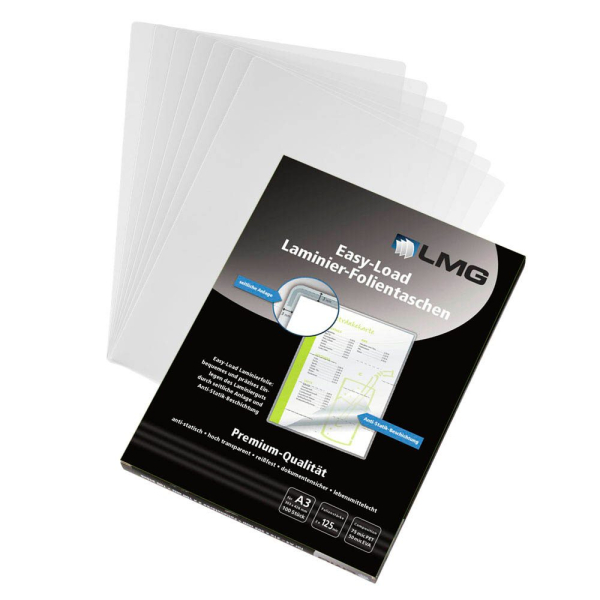 LMG Laminierfolien Easy Load LMGE-A3-125, A3, 303x426mm, 125mic, glänzend, antistatisch