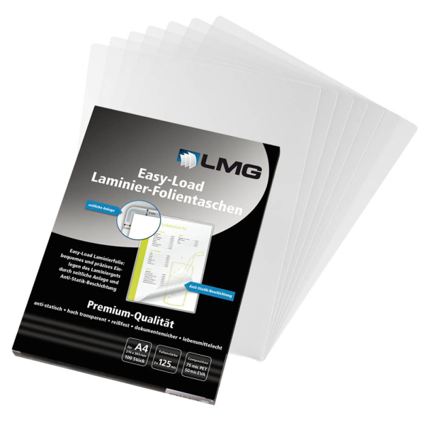 Entdecken Sie die hochwertigen Laminierfolien Easy Load LMGE-A4-125 von LMG, die perfekte Lösung für all Ihre Laminierbedürfnisse. Diese Laminierfolien bieten nicht nur optimalen Schutz für Ihre Dokumente, sondern überzeugen auch durch ihre benutzerfreundliche Handhabung.