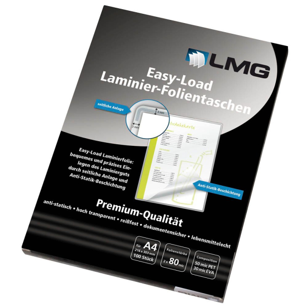 LMG Laminierfolien Easy Load LMGE-A4-80, A4, 216x303mm, glänzend, antistatisch