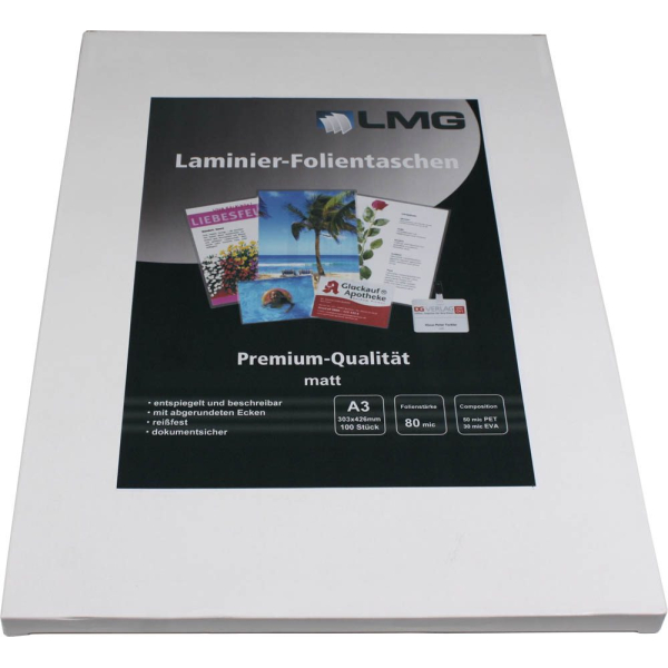 LMG Laminierfolien LMGA3-80M, A3, 303x426mm, 80mic, matt