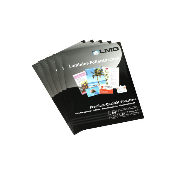 LMG Laminierfolien LMGA4-80S-25, A4, 216x303mm, 80mic, glänzend, selbstklebend