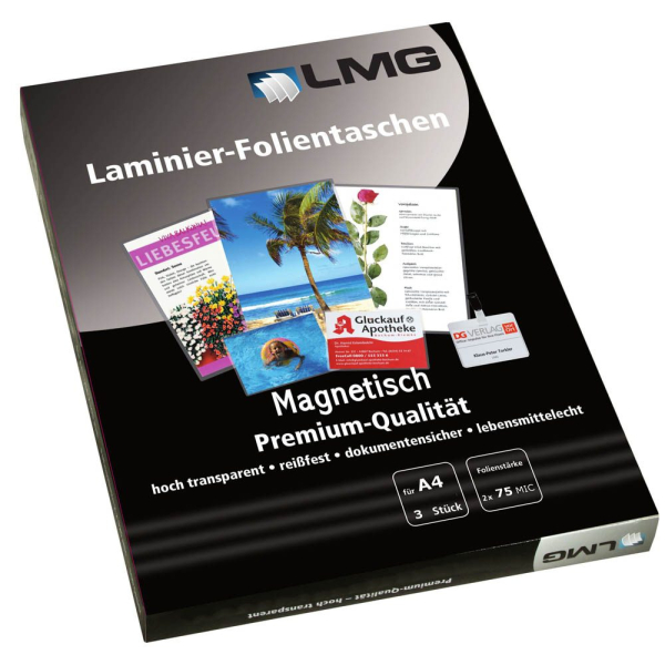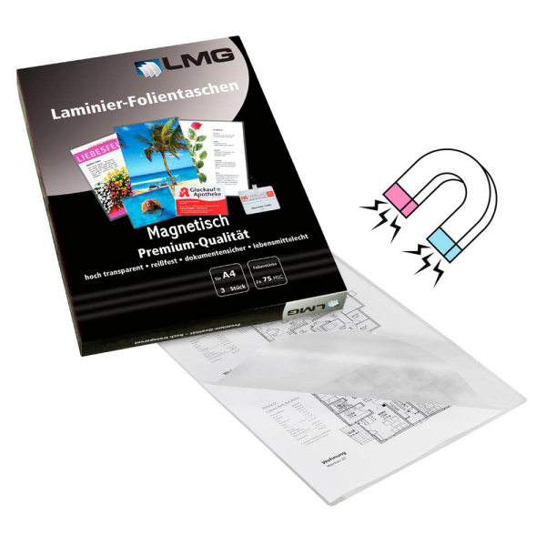 Entdecken Sie die hochwertigen Laminierfolien von LMG aus der Serie Magnetic Pouches. Diese Laminierfolien sind perfekt geeignet, um Ihre Dokumente, Fotos oder wichtige Unterlagen professionell zu schützen und gleichzeitig zu präsentieren.