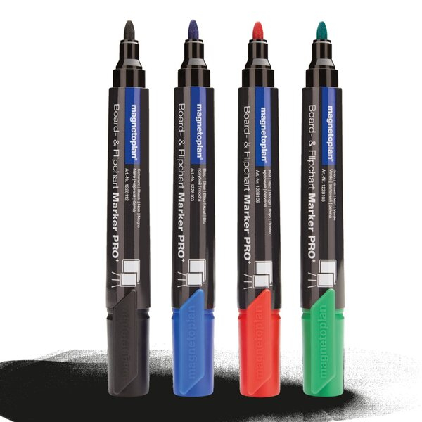 Entdecken Sie die Pro+ Flipchartmarker/Whiteboardmarker von Magnetoplan, die für eine Vielzahl von Anwendungen geeignet sind. Diese innovativen Marker schreiben nicht nur auf Whiteboard-Oberflächen, sondern auch auf Flipchart-Papier und bieten Ihnen eine flexible Lösung für Ihre Präsentationen und Notizen.