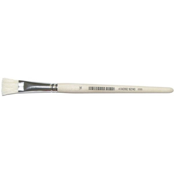 Der Borstenpinsel hat eine flache Spitze und ist in der Größe 8 erhältlich. Die Borsten sind naturfarben und die Pinselzwinge besteht aus Metall. Durch die flache Form eignet sich der Pinsel besonders gut für das Auftragen von Farben auf größeren Flächen.