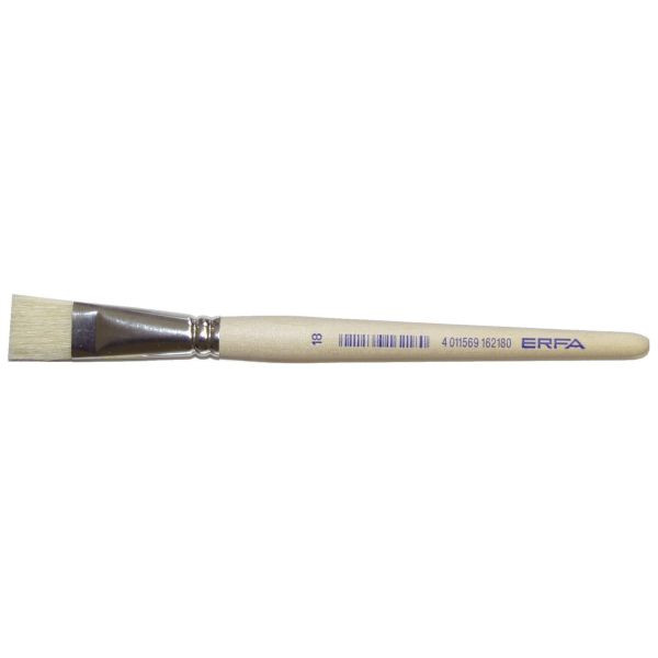 Der Borstenpinsel 162-16 ist ein flacher Pinsel mit einer natürlichen Borstenbürste. Die flache Spitze ermöglicht präzises Arbeiten und eine gleichmäßige Farbverteilung. Das Produkt ist in der Farbe natur/unlackiert gehalten und verfügt über eine Pinselzwinge aus Metall.