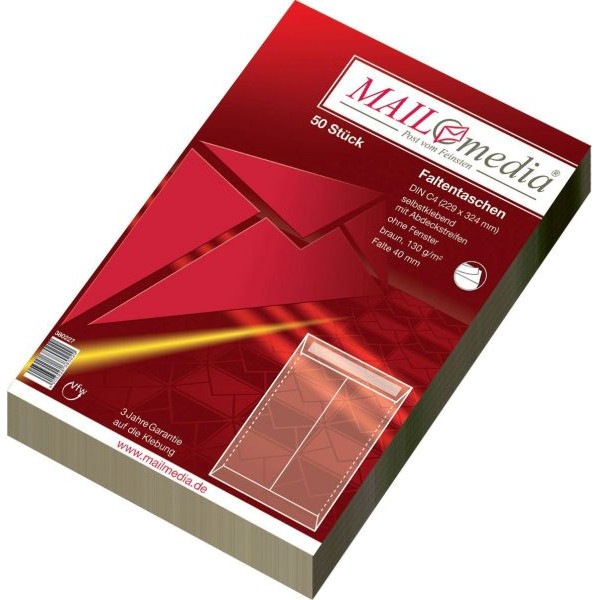 Jetzt MailMedia Faltentaschen, C4, ohne Fenster, haftklebend, 40mm-Falte, 125g, braun günstig kaufen.