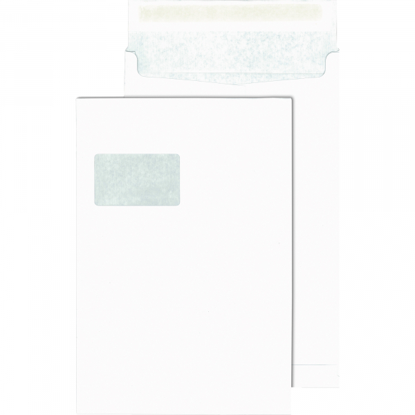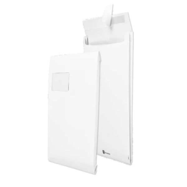 MailMedia Faltentaschen Securitex, C4, mit Fenster, haftklebend, 20mm-Falte, reißfest, wasserfest, 130g, weiß