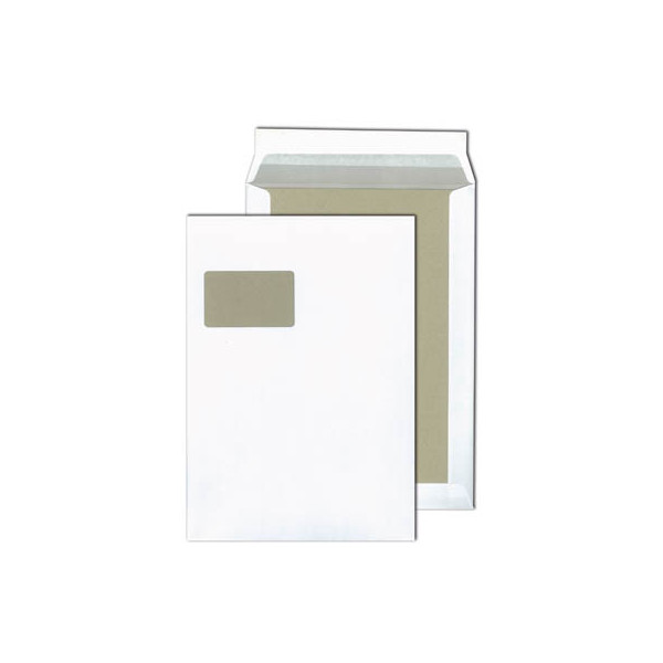 MailMedia Versandtaschen 30001495, C4, mit Fenster, haftklebend, mit Papprückwand, 120g, weiß
