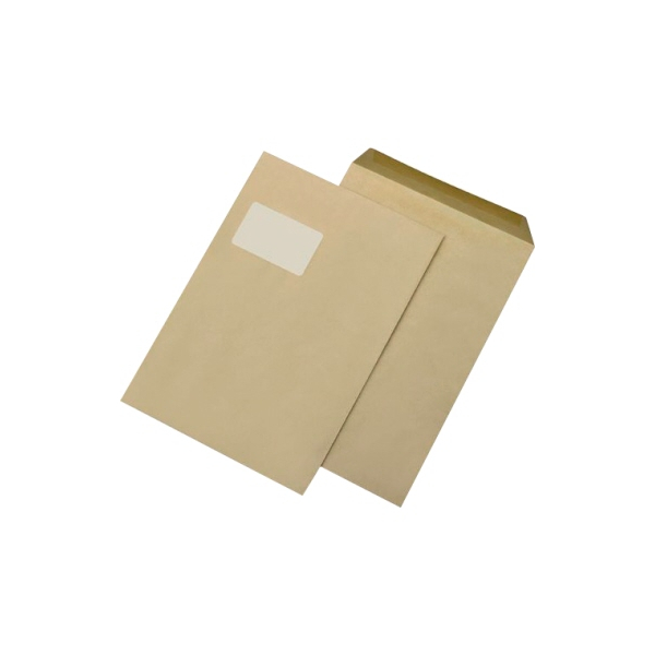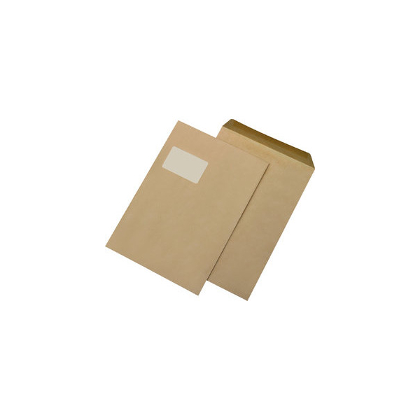 MailMedia Versandtaschen, C4, mit Fenster, nassklebend, 90g, braun