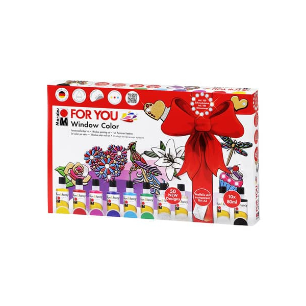 Marabu Window Color For You 04060 000 00116, Fensterfarben-Set 10 x 80ml