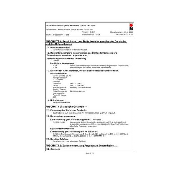 Das Fensterfarben-Set wird von Marabu hergestellt, einem renommierten Hersteller von hochwertigen Bastel- und Künstlerbedarf. Mit Marabu können Sie sich auf Qualität und Zuverlässigkeit verlassen, sodass Sie sich voll und ganz auf Ihre kreative Arbeit konzentrieren können.