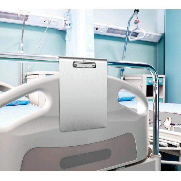 Das Klemmbrett ist aus hochwertigem Aluminium gefertigt und präsentiert sich in einem eleganten silbernen Farbton. Es ist ideal für den Einsatz in Kliniken, Praxen oder unterwegs und bietet Platz für Ihre Notizen und Dokumente.