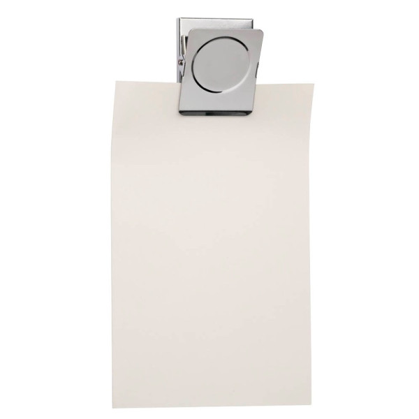 Der Magnet in silberner Farbe hat die Form einer Klammer, wodurch er nicht nur funktional, sondern auch stilvoll ist. Mit einer Größe von 4,3 x 5,2 x 2,8 cm passt er problemlos in jede Tasche oder Schublade.