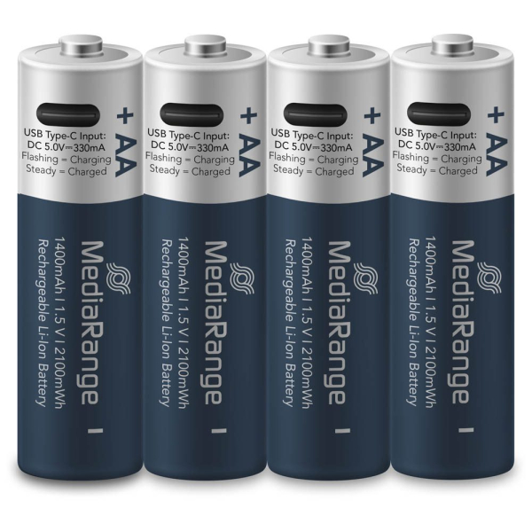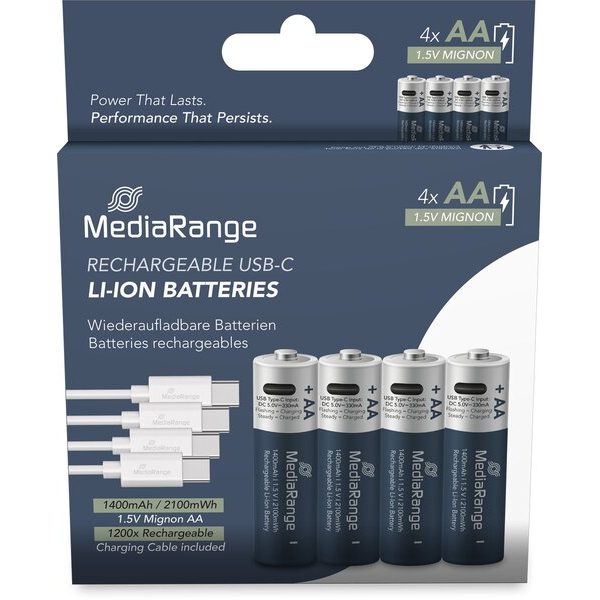 MediaRange Akkus Rechargeable USB, AA / Mignon / HR06, 3,7 Volt