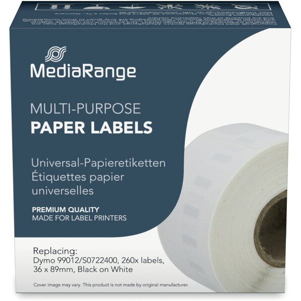 MediaRange Etiketten kompatibel zu Dymo 99012/S0722400, 260 Etiketten, 36 x 89 mm (H x B), schwarz auf weiß
