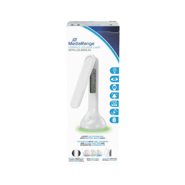Die Kompakte LED Schreibtischlampe in Weiß von MediaRange hat folgende Eigenschaften: