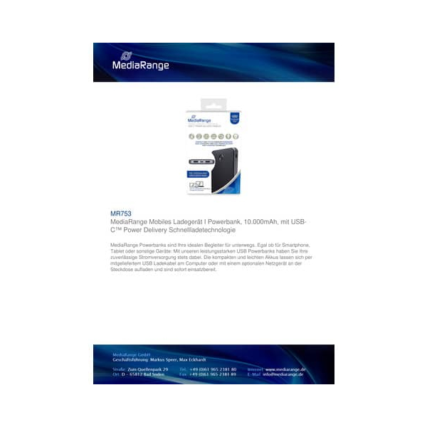 MEDIARANGE präsentiert das mobile Ladegerät | Powerbank mit einer beeindruckenden Kapazität von 10.000mAh. Dieses leistungsstarke Gerät ist Ihr idealer Begleiter für unterwegs. Egal, ob Sie Ihr Smartphone, Tablet oder andere Geräte aufladen möchten, mit dieser Powerbank haben Sie stets eine zuverlässige Stromversorgung zur Hand.