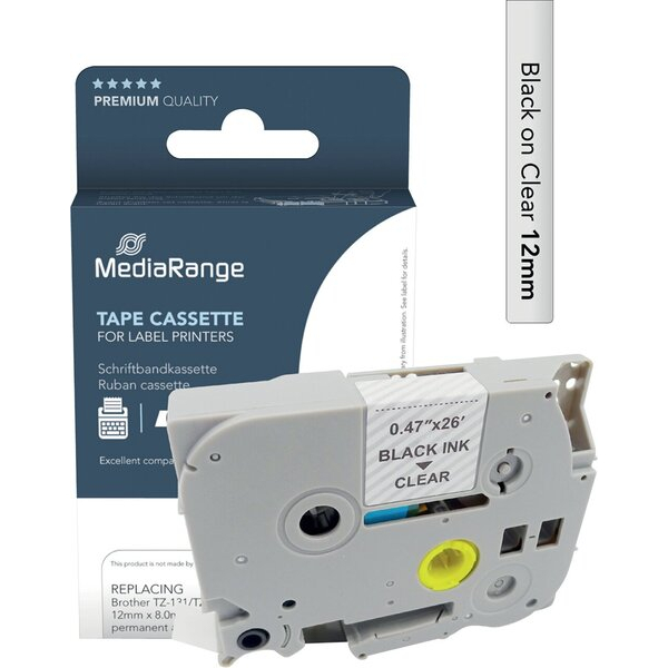 MediaRange Schriftband MRBTZ131, 12mm x 8m, schwarz/transparent,