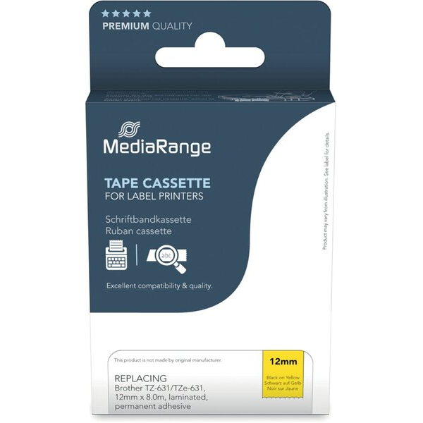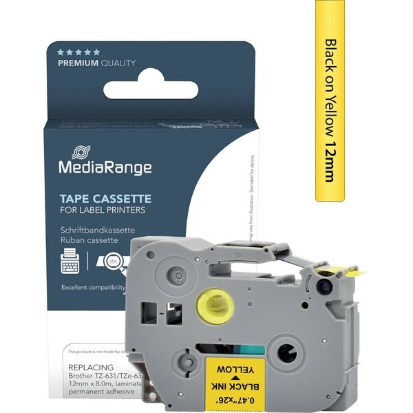 MediaRange Schriftband MRBTZ631, 12mm x 8m, schwarz/gelb,