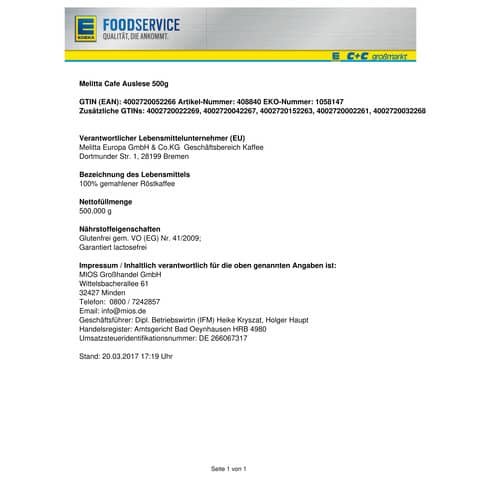 zum Datenblatt| Melitta Melitta in Kaffee anzeigen | |