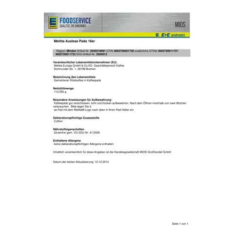 zum Datenblatt| Melitta Melitta in Kaffee anzeigen | |