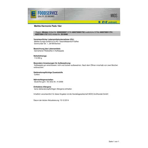 zum Datenblatt| Melitta Melitta in Kaffee anzeigen | |