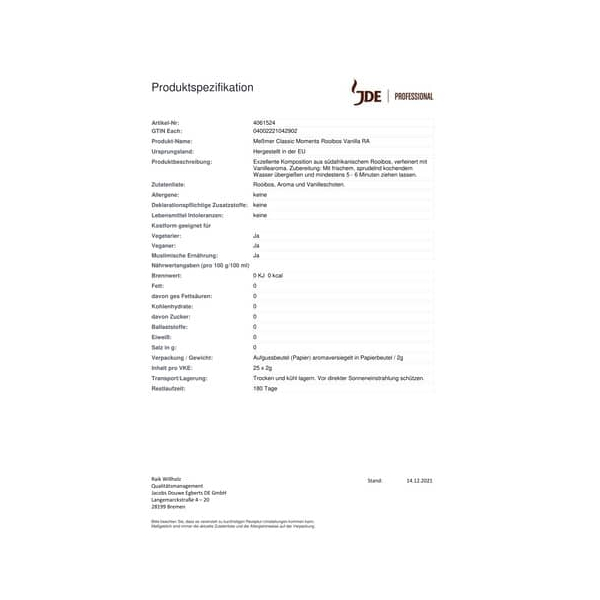 • Sorte: Kräutertee • Geschmacksrichtung: Rooibos mit Vanillegeschmack