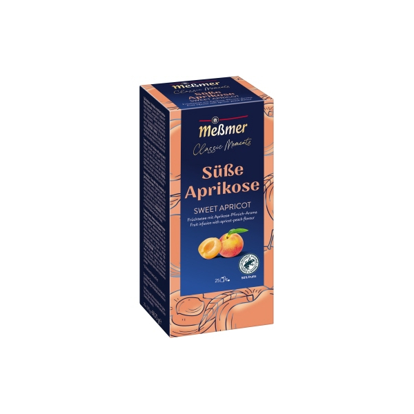 Entdecken Sie den Meßmer Tee Classic Moments 106730 Süße Aprikose und genießen Sie einen Moment voller Süße und Frische. Dieser aromatische Tee verzaubert Ihren Gaumen mit dem köstlichen Geschmack von sonnengereiften Aprikosen.