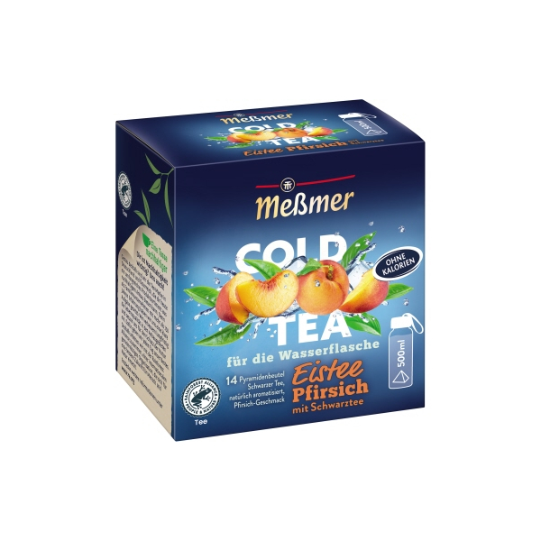 Entdecken Sie den Meßmer Tee COLD TEA 106040 Eistee Pfirsich – die erfrischende Art, Ihren Tag zu beleben! Zeit für Cold Tea. Die gesunde und genussvollste Art, Ihren Körper mit Flüssigkeit zu versorgen, egal wo Sie sind. Beleben Sie Ihr Wasser mit dem exotischen Geschmack des Pfirsichs, perfekt für unterwegs, im Büro oder beim Sport. Denn den Beutel können Sie einfach in der Flasche lassen.