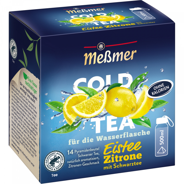 Entdecken Sie den erfrischenden Meßmer Tee COLD TEA 106989 Eistee Zitrone – die perfekte Wahl für heiße Tage und durstige Momente. Zeit für Cold Tea! Die gesunde und genussvollste Art, Ihren Körper mit Flüssigkeit zu versorgen, egal wo Sie sind. Beleben Sie Ihr Wasser mit dem exotischen Geschmack von Zitrone. Ideal für unterwegs, im Büro oder beim Sport, denn den Beutel können Sie einfach in der Flasche lassen.