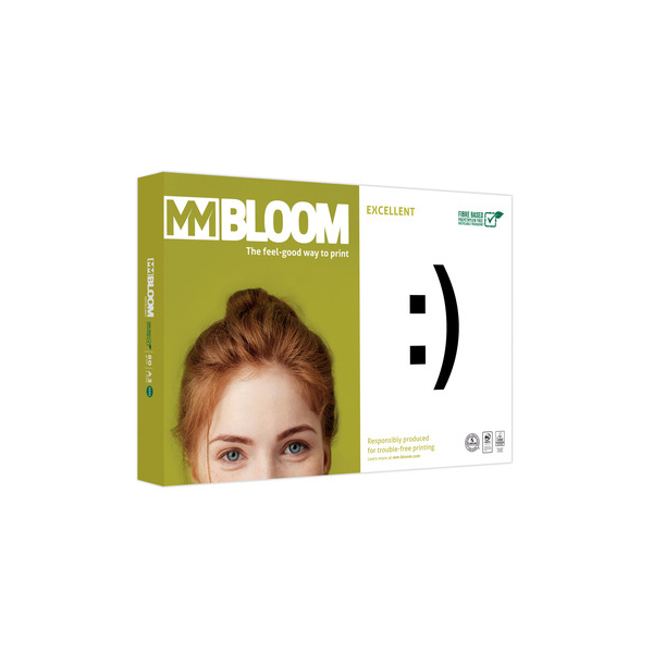 Das Kopierpapier MM Bloom Excellent bietet hervorragende Druckergebnisse in Schwarz-Weiß und Farbe, ist 80 g/qm schwer und wird plastikfrei verpackt. Mit einer PEFC- und EU Ecolabel-Zertifizierung trägt es zur Umweltfreundlichkeit bei.