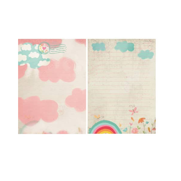 20 Briefbögen im DIN A5-Format mit 20 passenden Umschlägen. Die Umschläge sind von innen mit niedlichen Motiven bedruckt.