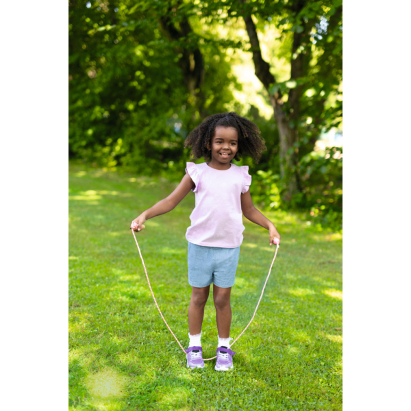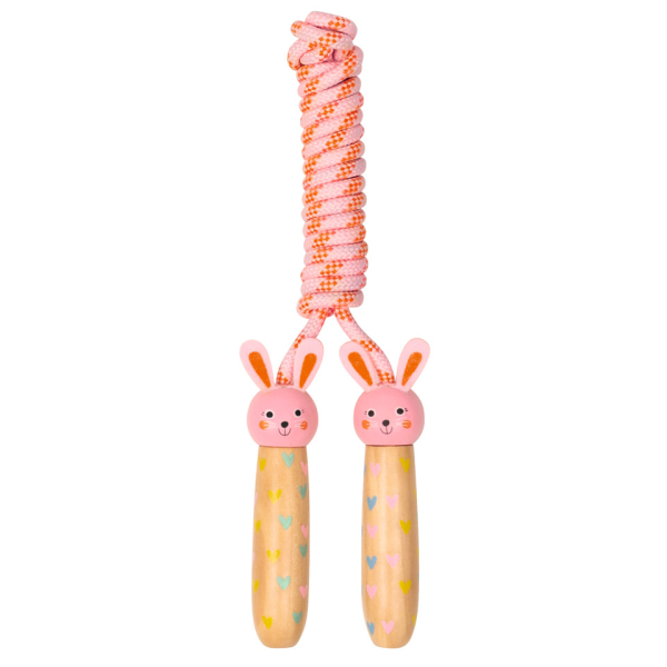Bewegungsspaß mit Frühlingsmotiven - das liebevoll gestaltete Springseil für aktive Kinder! Ob auf dem Schulhof, im Garten oder beim Frühlingsspaziergang - dieses Springseil bringt Schwung in den Tag. Die robusten Griffe mit niedlichen Tiergesichtern und Filzohren liegen gut in der Hand, das längenverstellbare Seil lässt sich individuell anpassen. Ein fröhlicher Begleiter für kleine Bewegungskünstler*innen. Springseil mit fröhlichem Tierdesign, robuste Holzgriffe mit verspielten Filzohren, längenverstellbares Seil aus Baumwolle. Ideal für Bewegung an der frischen Luft. In zwei fröhlichen Farbdesigns erhältlich.