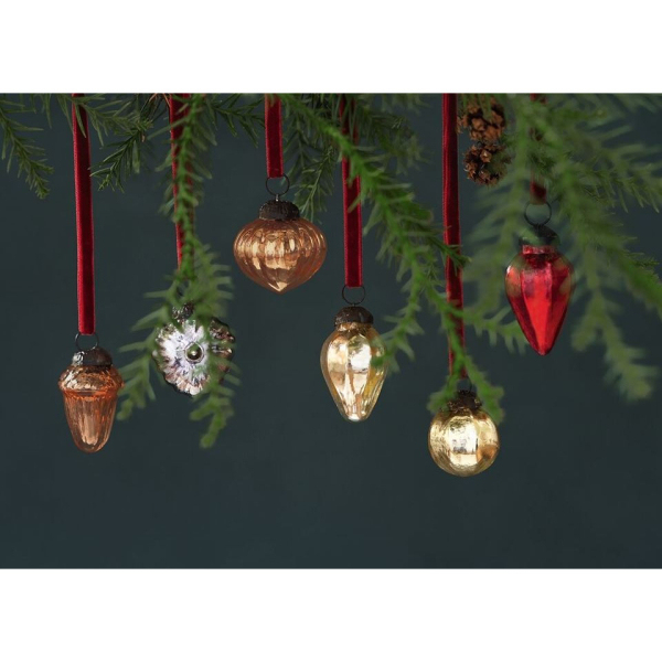 Klein, fein und wunderbar festlich! Diese Mini-Christbaumkugeln aus Glas bringen nostalgischen Charme in deine Weihnachtsdekoration. Die detailreichen Formen und edlen Farben werden durch ein hochwertiges Satinband abgerundet - ideal zum Aufhängen am Baum, an Zweigen oder als stilvolle Geschenkverzierung. Trotz ihrer kompakten Größe sorgen sie für eine festliche Atmosphäre mit besonderem Flair. Die Kugeln sind in verschiedenen Formen und Farben sortiert - jede für sich ein dekoratives Schmuckstück. + aus Glas mit edlem Satinband + ideal für Baum, Zweige oder Geschenke + in verschiedenen Formen und Farben + perfekt für eine klassische Weihnachtsdeko verschiedenen Varianten. Zufällige Sortierung.