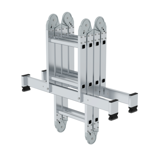 Die Leiter besteht aus einem 4-teiligen Design mit einer Aluminium-Konstruktion, die für ihre Langlebigkeit geschätzt wird. Die stabilen Rechteckrohr-Holme und die beidseitig geriffelten Vierkantsprossen (30 x 30 mm) sorgen für einen sicheren Stand.