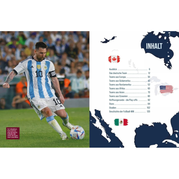 Die Weltmeisterschaft 2026 in den USA, Kanada und Mexiko wird einen Wettstreit in nie dagewesenen Dimensionen bieten. Erstmals kämpfen bei einer Fußball-WM derartig viele Nationen um den begehrten Titel. Gelingt es dem amtierenden Weltmeister Argentinien, ihn zu verteidigen? Und wird Deutschland nach dem holprigen Start in der WM-Qualifikation die Erwartungen der Fans überflügeln? Das große WM-Buch 2026 stellt Teams und Favoriten vor, porträtiert die Stars des Weltfußballs von Kylian Mbappé bis Joshua Kimmich und liefert spannende Fakten zu den 16 Stadien, in denen gespielt wird. Voll mit packenden Geschichten, Statistiken und beeindruckenden Bildern ist es die perfekte Einstimmung auf das größte Fußballfest aller Zeiten.