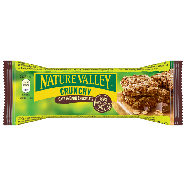 Entdecken Sie den köstlichen Haferriegel Hafer & d. Schokolade von NATURE VALLEY. Dieser knusprige Riegel besteht aus hochwertigen Vollkorn-Haferflocken und ist ein idealer Snack für zwischendurch.