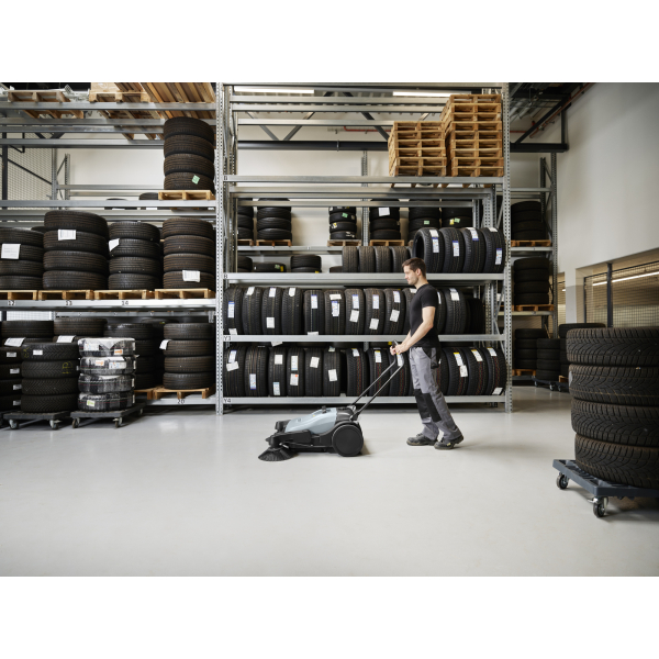 Die Hauptkehrwalze ist mit einem beidseitigen Zahnradantrieb versehen und der Seitenbesenantrieb erfolgt mittels Riemen. Wenn die Maschine vom Benutzer nach vorne geschoben wird, entsteht nur ein sehr geringes Geräusch. Das Gerät ist äußerst benutzerfreundlich, etwa durch den weich ummantelten Griff, der einstellbar ist, um immer eine angenehme Arbeitshaltung zu gewährleisten. Der eingebaute Filter hält den Staub zurück und der große Kehrgutbehälter lässt sich leicht entleeren. Diese schnelle und produktive Nilfisk Kehrmaschine ist eine ideale Wahl für Anwendungen wie die Reinigung von kleinen Produktionsstätten, Parkplätzen, Einkaufszentren, Schulen, Werkstätten, Busstationen und Bahnhöfen sowie in Außenbereiche von Bürogebäuden.