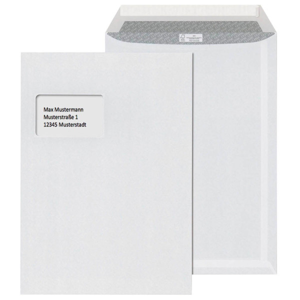 MailMedia Versandtaschen, C4, mit Fenster, selbstklebend, 100g, weiß