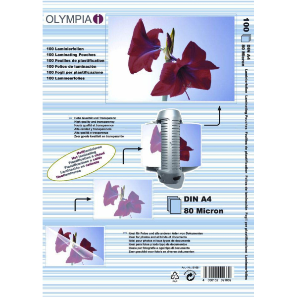 Olympia Laminierfolien 271197, A4, 216x303mm, 80mic, glänzend